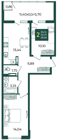 Продается 2-х комн. новостройка, 59.03 кв.м., 15/18 эт