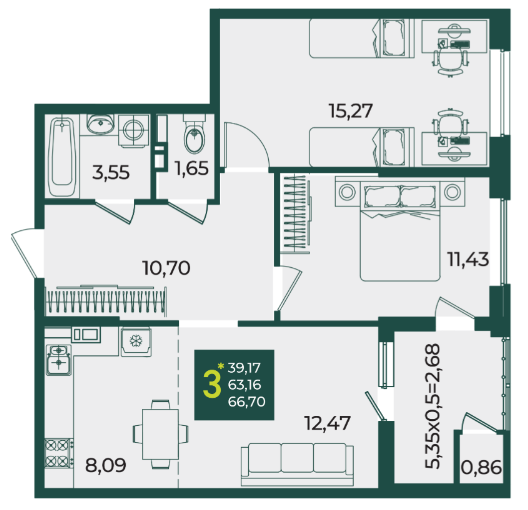 | Площадь, кв.м. | 66.7 |