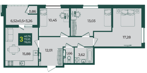 Продается 3-х комн. новостройка, 78.05 кв.м., 14/18 эт