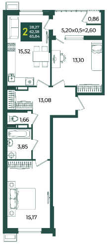 Продаётся 2- х комнатная квартира с просторной кухней- гостиной 15.52!!!