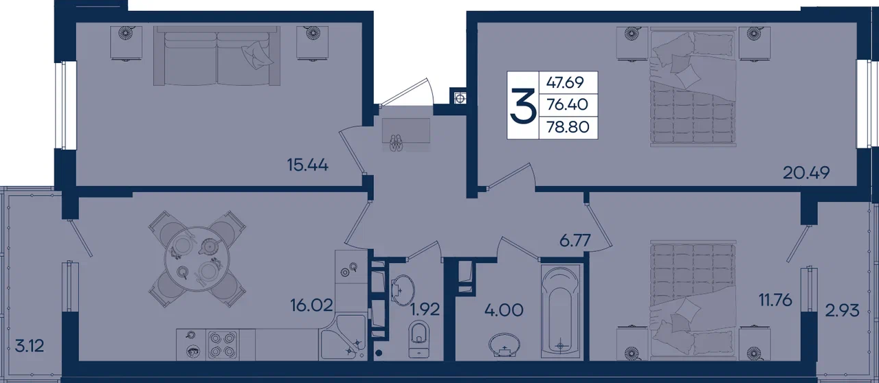 Продается 3-х комн. новостройка, 78.8 кв.м., 8/9 эт