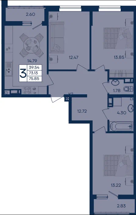 Продается 3-х комн. новостройка, 75.85 кв.м., 5/9 эт