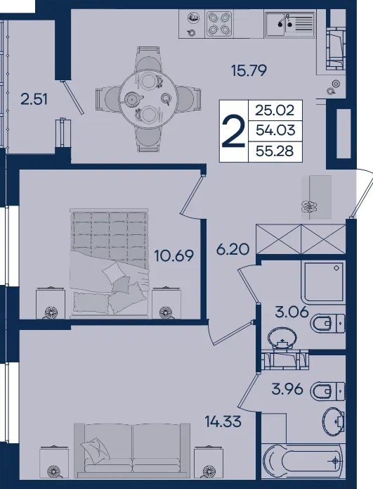 Продается 2-х комн. новостройка, 55.28 кв.м., 11/18 эт
