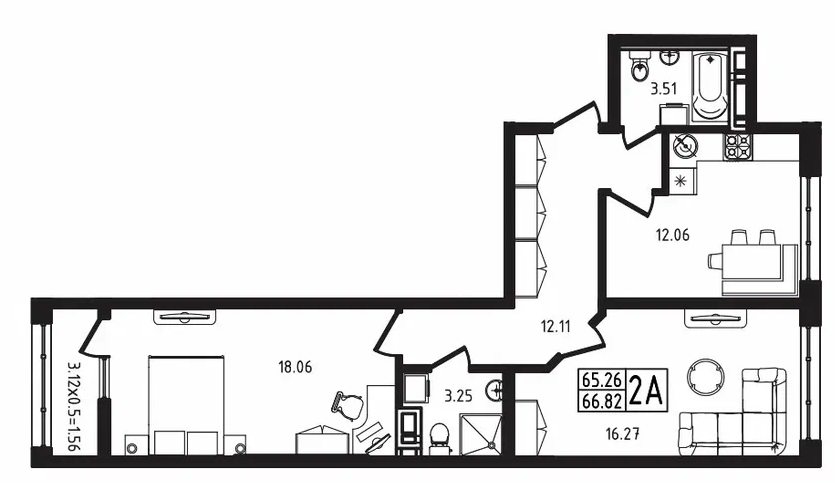 Продается 2-х комн. новостройка, 66.82 кв.м., 6/7 эт