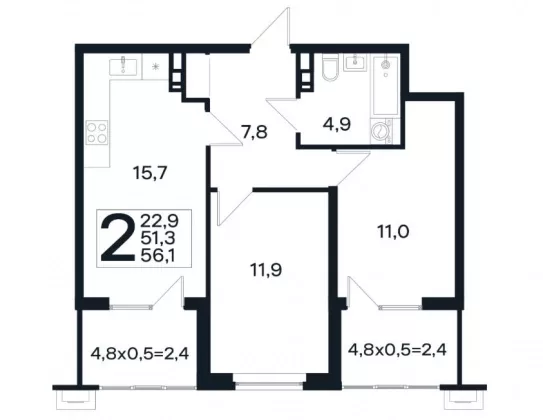 Продается 2-х комн. новостройка, 56 кв.м., 2/4 эт