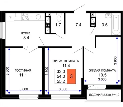 Продается 3-х комн. новостройка, 55.2 кв.м., 16/16 эт