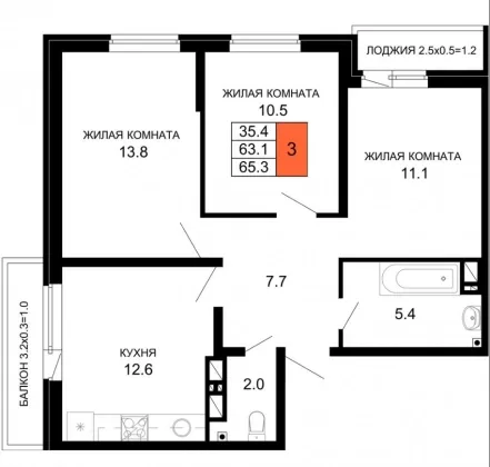 Продается 3-х комн. новостройка, 65.1 кв.м., 11/16 эт