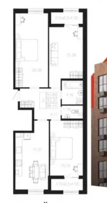 Продается 3-х комн. новостройка, 86.41 кв.м., 1/9 эт