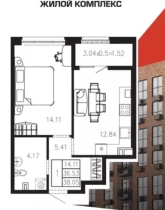| Площадь, кв.м. | 38.5 |