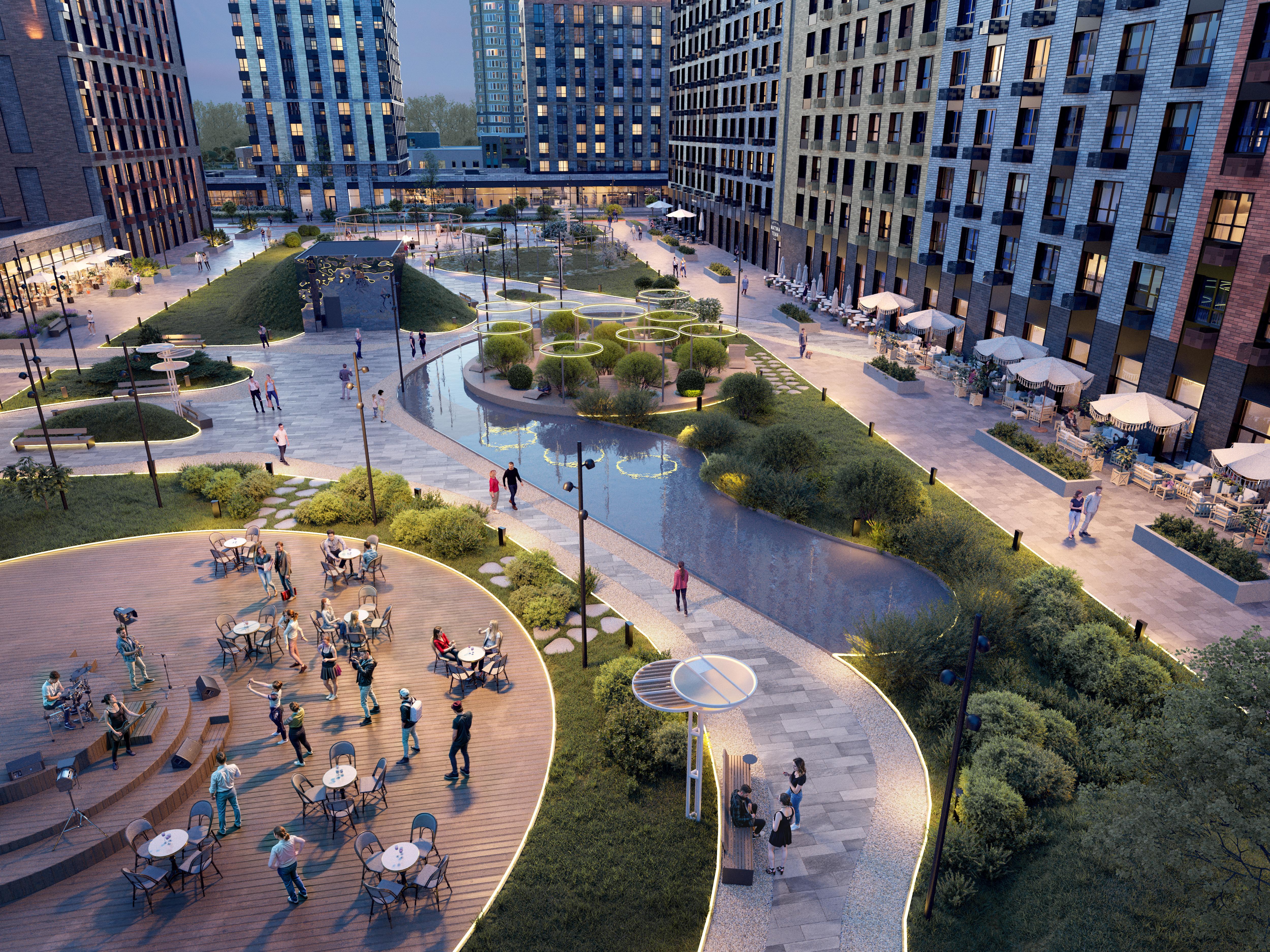 Ha территории ЖK обустроены комфортные зоны отдыха, прогулочные аллеи, детские и спортивные площадки с безопасным покрытием. В шаговой доступности находятся школы, детские сады, поликлиники и торговые центры, фитнес клуб «BALANCE», что обеспечивает полный комфорт для жителей всех возрастов.