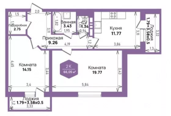 Продается 2-х комн. новостройка, 66.05 кв.м., 16/24 эт