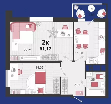 Продается 2-х комн. новостройка, 61.17 кв.м., 6/9 эт