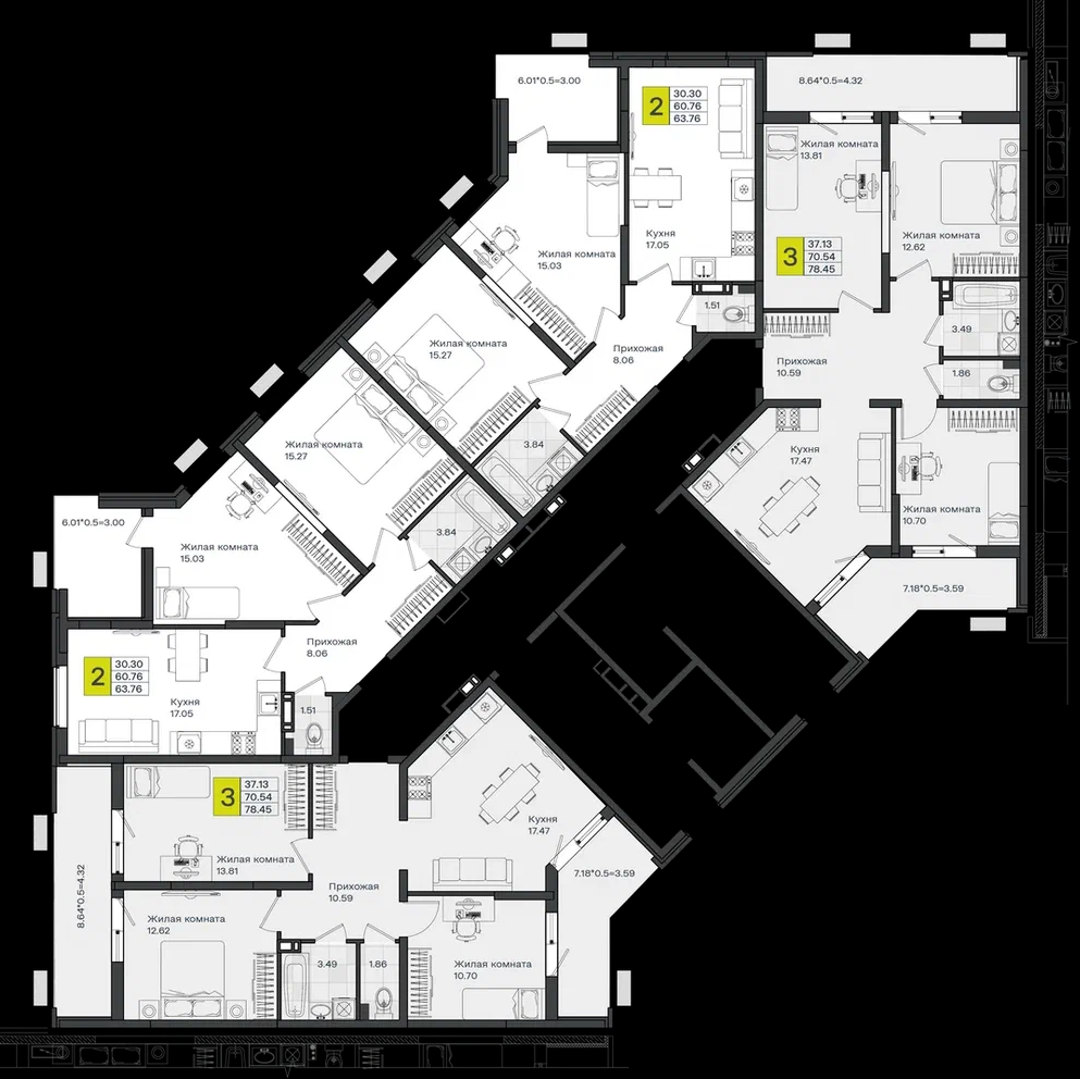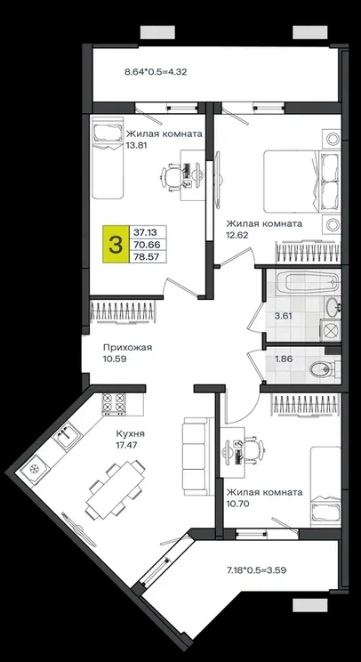 Продается 3-х комн. новостройка, 78.45 кв.м., 6/8 эт