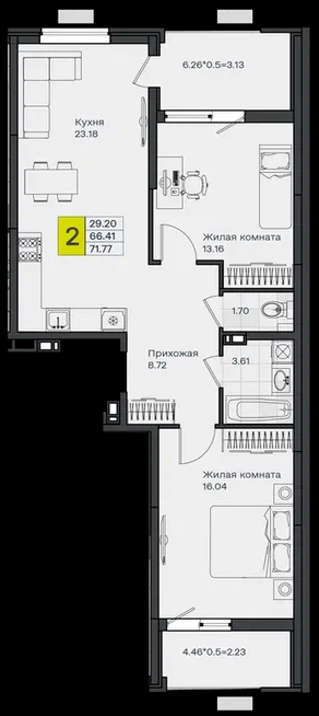 2-х комнатная квартира с большой кухней- гостиной 23,18 !!!