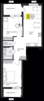 Продается 2-х комн. новостройка, 71.91 кв.м., 2/8 эт