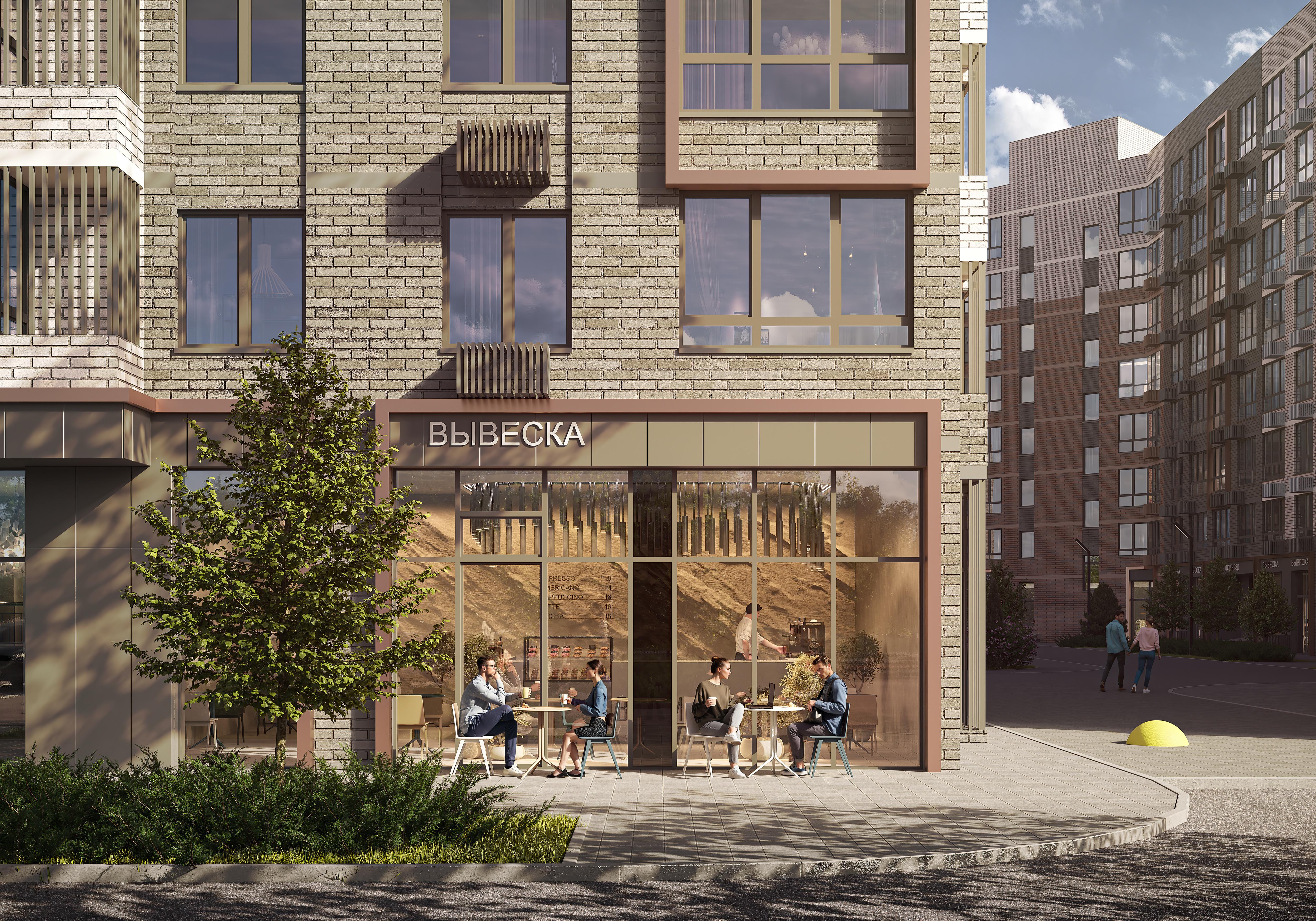 На первом этаже дома коммерческие помещения, аптеки, магазины, кафе, пункты выдачи. Не выходя из комплекса, можно приобрести всё необходимое.