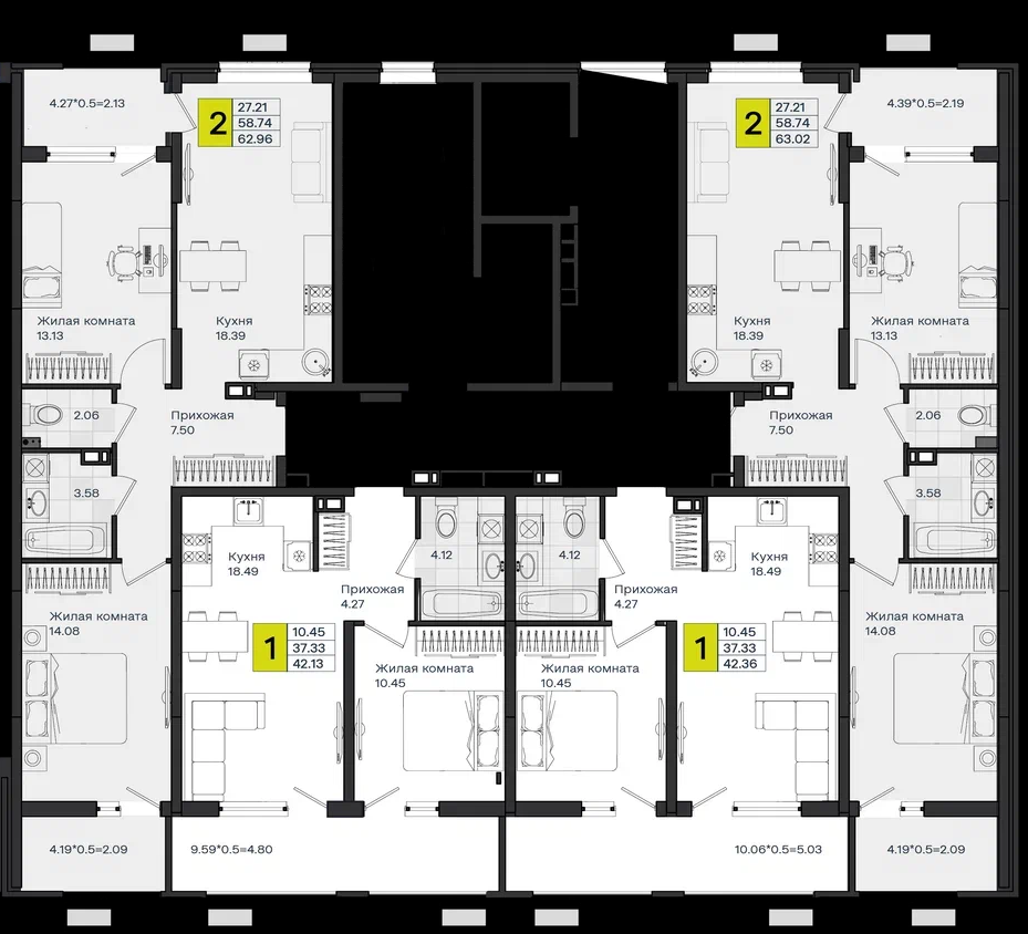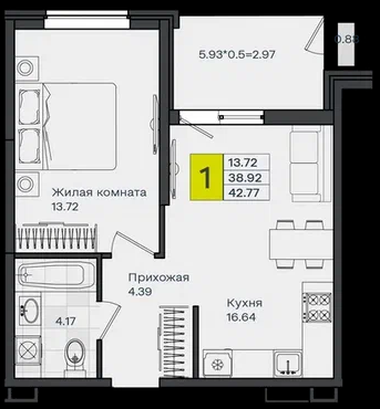 Продается однокомнатная новостройка, 42.77 кв.м., 5/8 эт