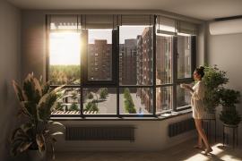 Большие окна заполняют пространство естественным светом! Позвольте солнечным закатам и солнечным лучам украсить вашу квартиру!