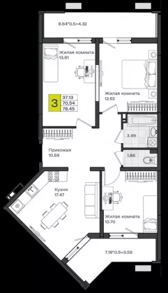 Площадь, кв.м.78.45