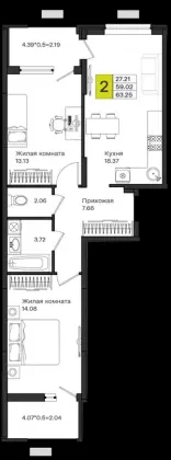 Продается 2-х комн. новостройка, 63.12 кв.м., 3/8 эт