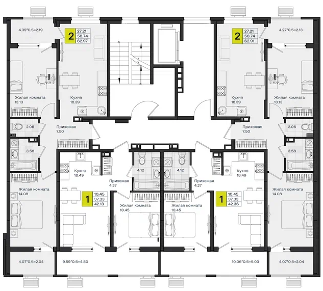 Двухкомнатная квартира с просторной кухней- гостиной 18,39 м2 с двумя просторными лоджиями!!!