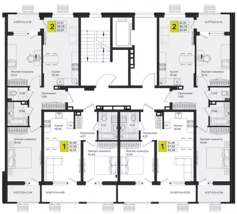 Продается 2-х комн. новостройка, 63.12 кв.м., 6/8 эт