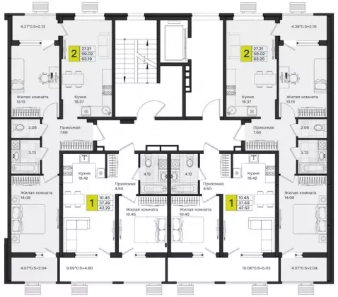 Продается 2-х комн. новостройка, 63.37 кв.м., 2/8 эт
