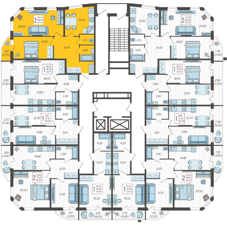Продается 2-х комн. новостройка, 67.3 кв.м., 3/16 эт