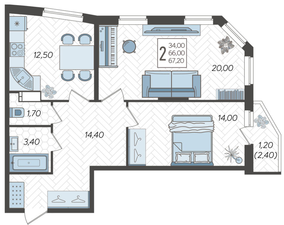 Продается 2-х комн. новостройка, 67.5 кв.м., 8/16 эт