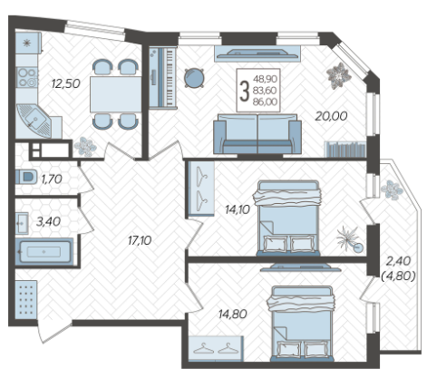 Продается 3-х комн. новостройка, 86.3 кв.м., 10/16 эт