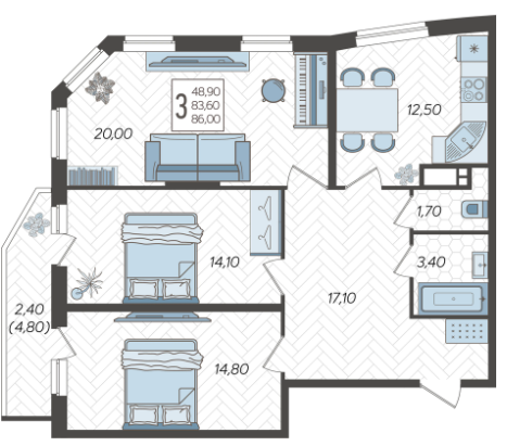 Продается 3-х комн. новостройка, 86.8 кв.м., 15/16 эт