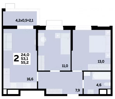 Продается 2-х комн. новостройка, 55.2 кв.м., 4/16 эт