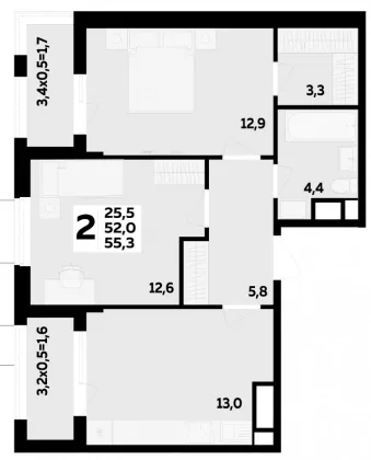 Продается 2-х комн. новостройка, 55.3 кв.м., 2/16 эт