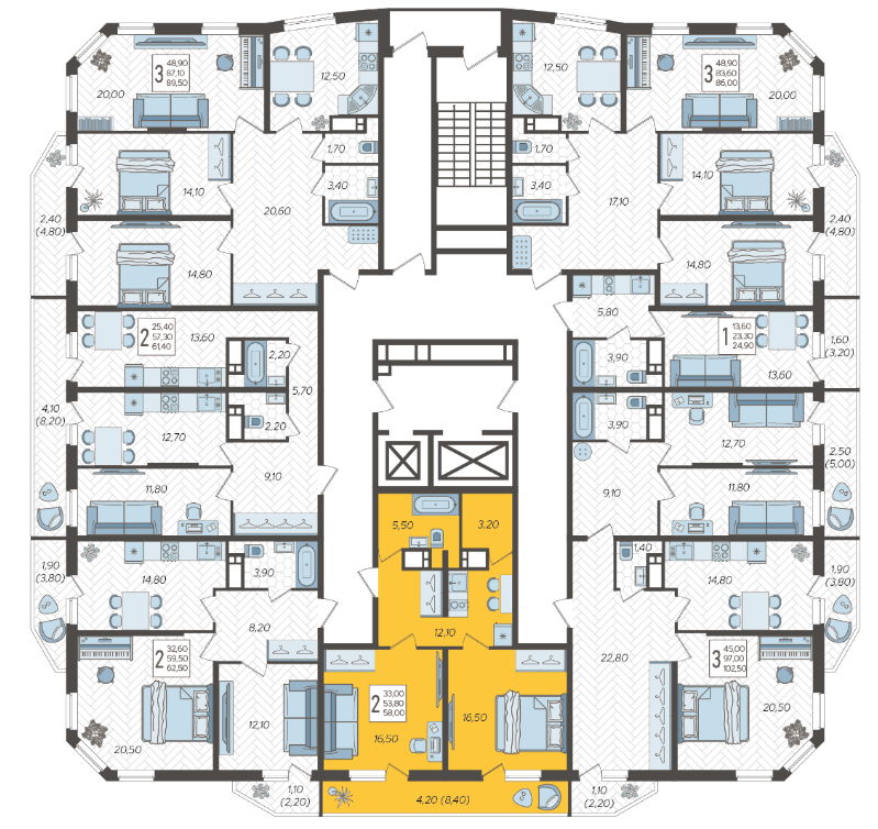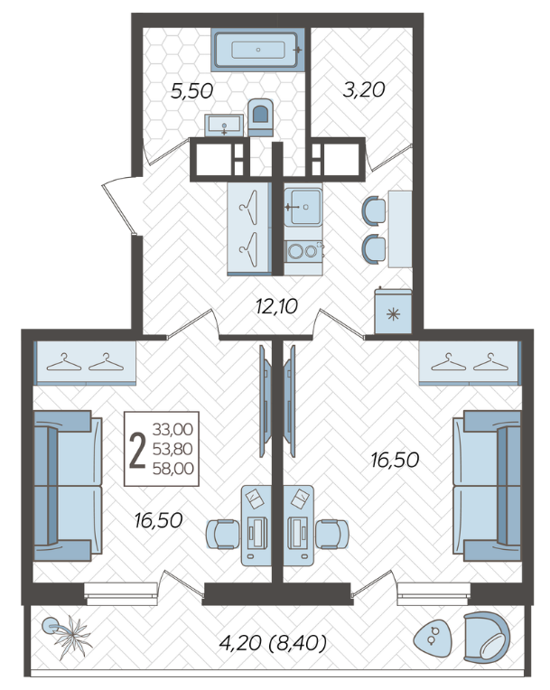 Продается 2-х комн. новостройка, 58.9 кв.м., 9/16 эт
