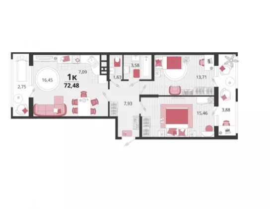 Продается 2-х комн. новостройка, 73.16 кв.м., 11/18 эт