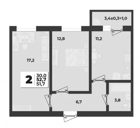 Продается 2-х комн. новостройка, 52.7 кв.м., 2/5 эт