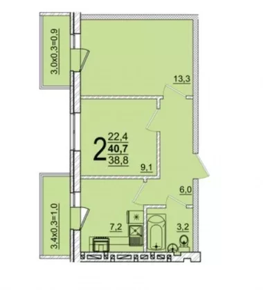 Площадь кухни, кв.м.9