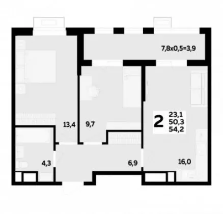 Продается 2-х комн. новостройка, 54.3 кв.м., 10/16 эт