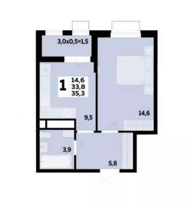 Продается однокомнатная новостройка, 35.3 кв.м., 8/16 эт