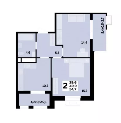 Продается 2-х комн. новостройка, 54.7 кв.м., 4/16 эт