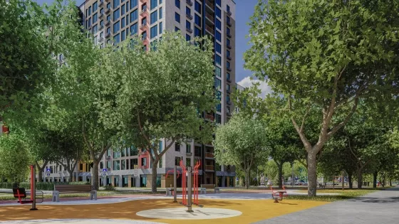 Современный комплекс, дизайнерские входные группы, просторная придомовая территория с арт объектами, зонами отдыха для взрослых и детей, площадки для занятия спортом. На территории коммерческие помещения, что позволит жильцам не выходя из комплекса совершать покупки не выходя из комплекса.
