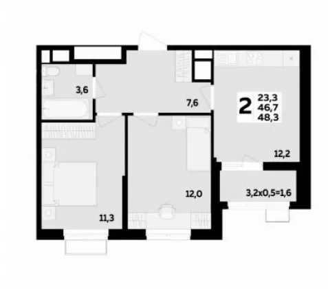 Продается 2-х комн. новостройка, 48.4 кв.м., 4/16 эт