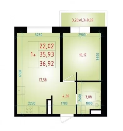Продается однокомнатная новостройка, 36.52 кв.м., 4/9 эт