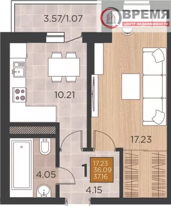 Продается однокомнатная новостройка, 37 кв.м., 4/17 эт