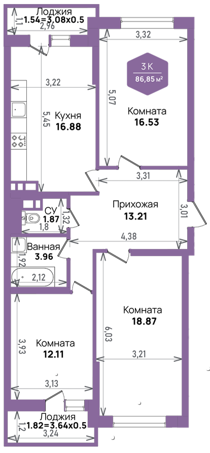 Продается 3-х комн. новостройка, 86.73 кв.м., 16/24 эт