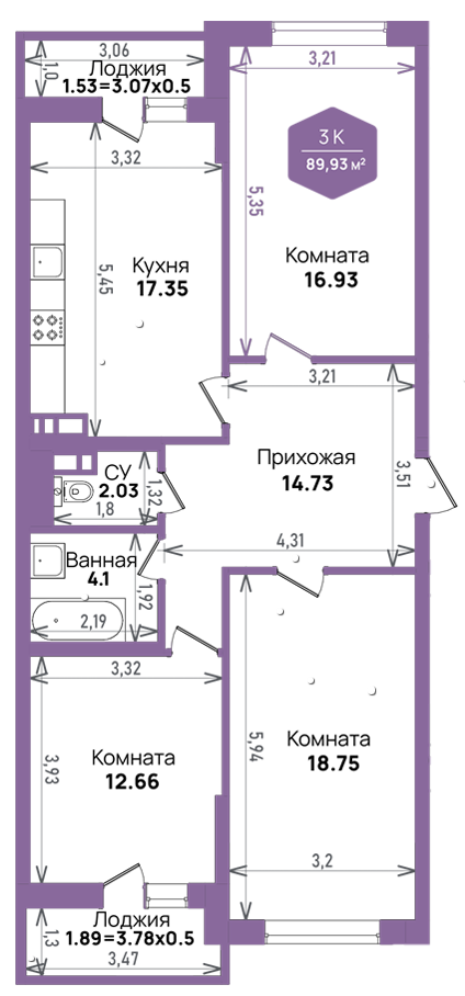 Продается 3-х комн. новостройка, 89.93 кв.м., 10/24 эт