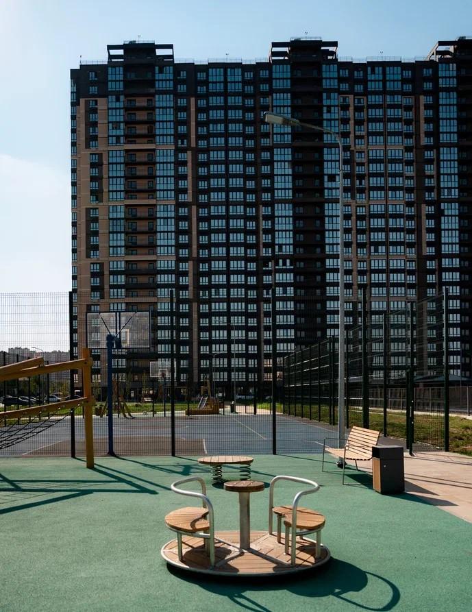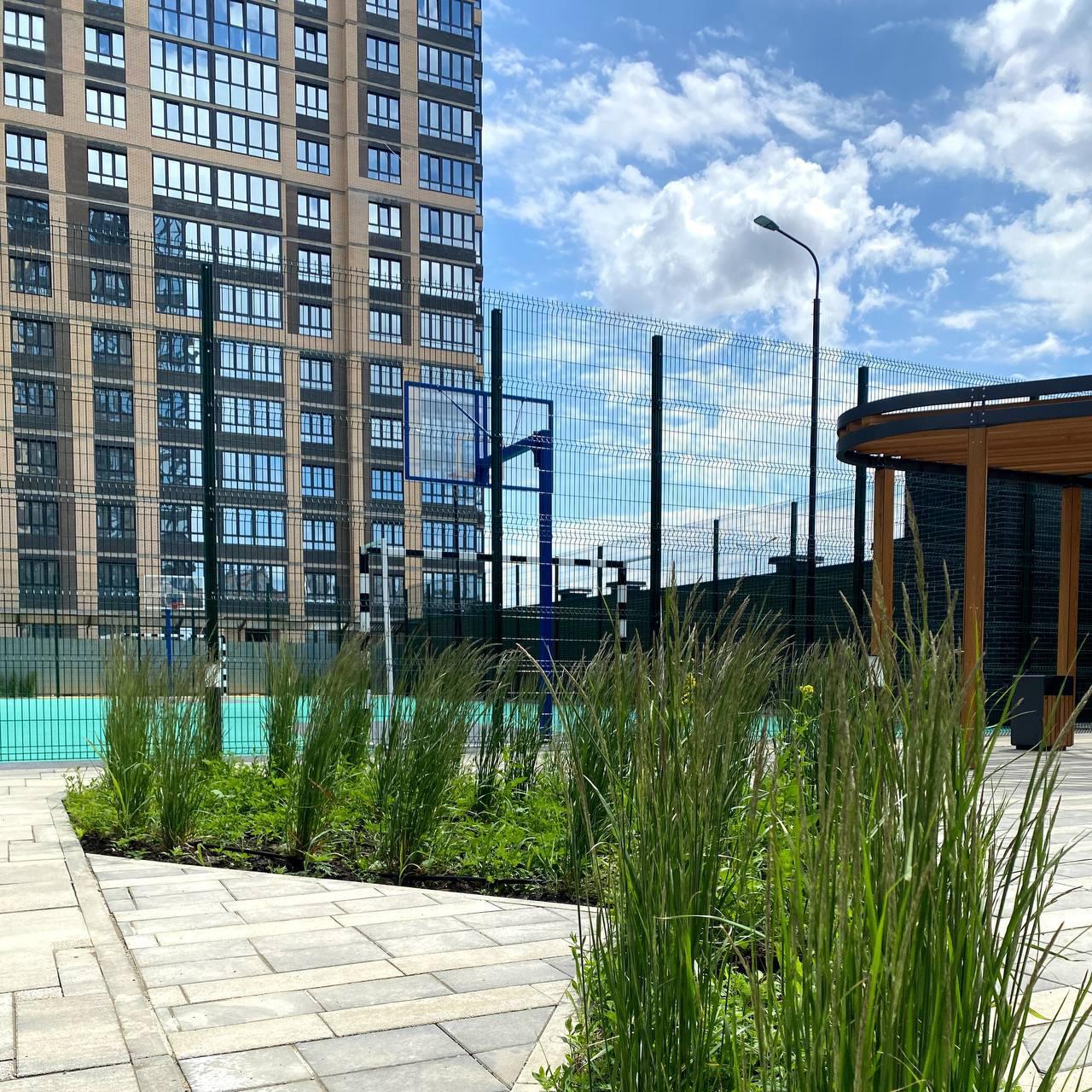 На территории есть зоны для барбекю с крытыми беседками, современные спортивная и детская игровая площадка, аллея для прогулок, подземная парковка.