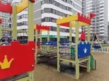 Во дворе дома новая школа, сдача школы в этом году, рядом построен храм.