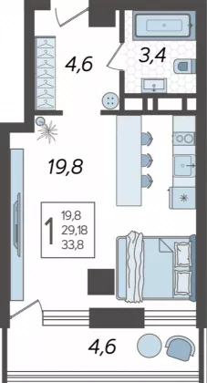 Продается Студия новостройка, 33.8 кв.м., 13/15 эт
