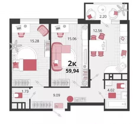 Продается 2-х комн. новостройка, 59.94 кв.м., 16/18 эт